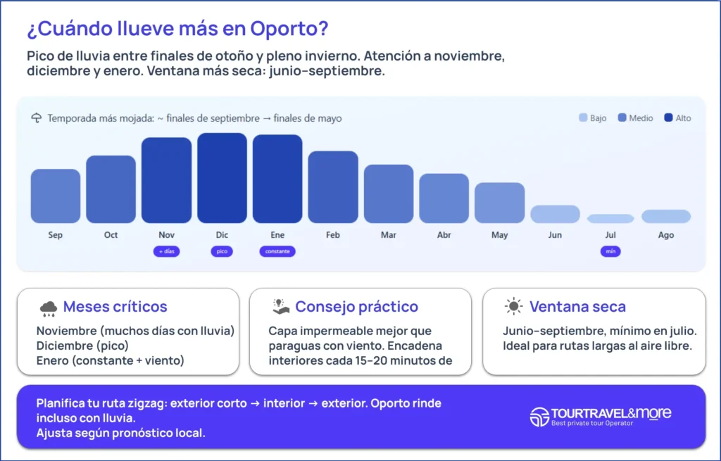 Resumen rápido: cuándo llueve más en Oporto (y por qué eso puede jugar a tu favor)